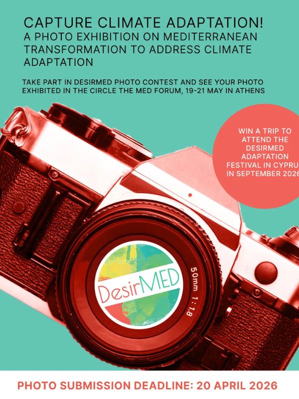 This photo exhibition endeavors to create a shared visual space, where a wide array of perspectives on climate adaptation can meet, inspire dialogue, and generate reflection on how we live with change. Participants will join a growing Mediterranean community working toward a more resilient future. Importantly, the winner will have the opportunity to attend one of DesirMED’s flagship events, and network with a wide community of people in the Mediterranean region. The winner will participate in our efforts to ensure a more resilient future.