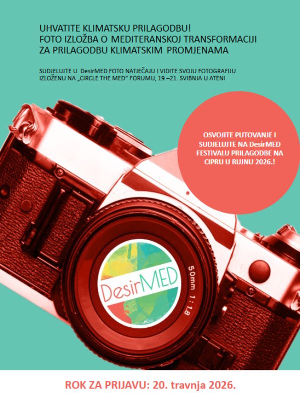 U sklopu projekta DesirMED pozivamo osobe svih profila da sudjeluju u otvorenom foto natječaju koji dokumentira i interpretira klimatski otporne transformacije u mediteranskoj regiji. Natječaj je otvoren za sve – studente, profesionalce, amatere, istraživače, aktiviste i širu javnost.