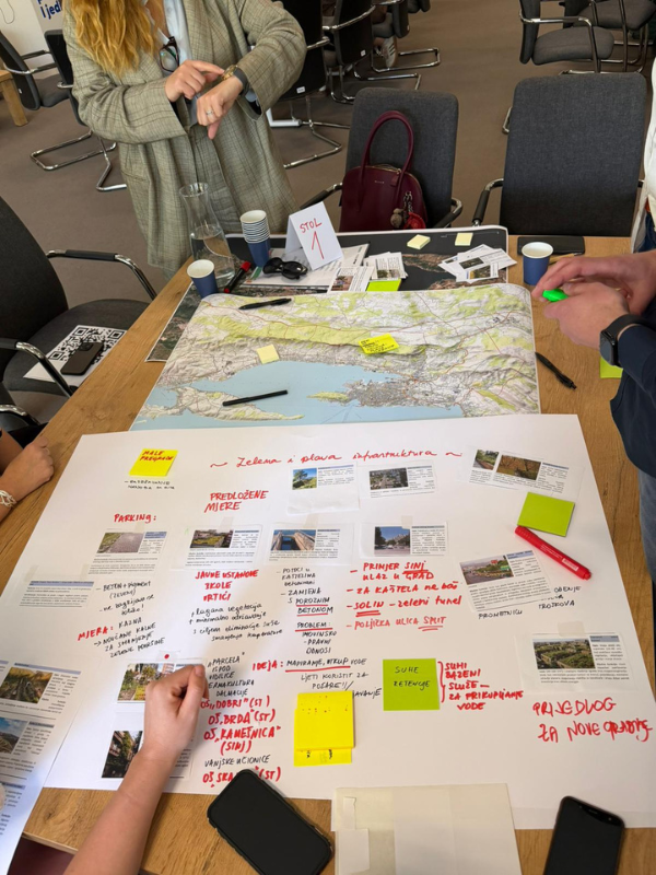 Na radionici je poseban naglasak stavljen na interaktivan rad sudionika. U središtu stolova nalazile su se karte Kaštelanskog zaljeva, a sudionici su koristili kartice s različitim rješenjima utemeljenima na prirodi (NbS), koje su potom pozicionirali na konkretne lokacije gdje vide njihov najveći potencijal.