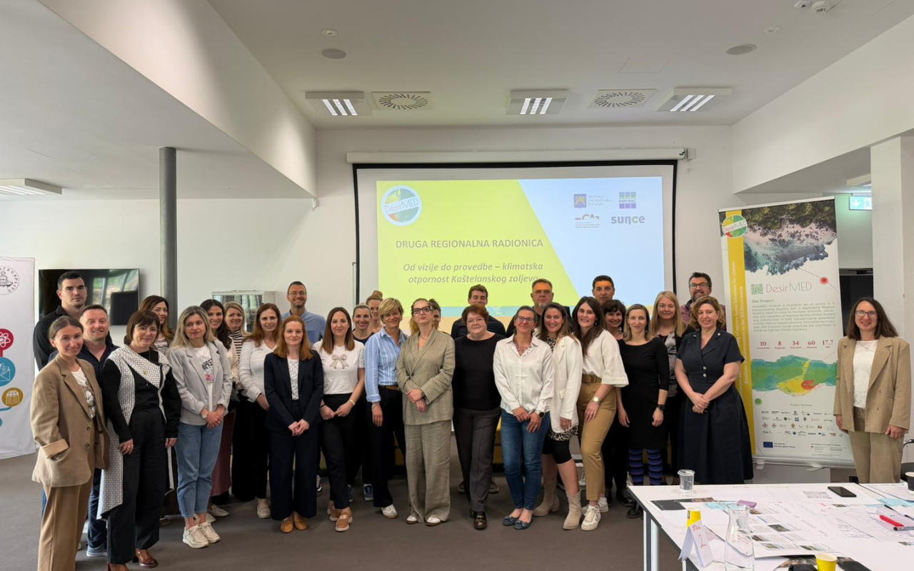Kaštelanski zaljev je složeni mozaik klimatskih pritisaka i promjena koji otvara pitanje kako upravljati budućnošću jednog od najosjetljivijih obalnih područja. Tim povodom, u Splitu 17. travnja 2026. održana je druga regionalna radionica „Od vizije do provedbe – klimatska otpornost Kaštelanskog zaljeva” projekta DesirMED. Okupila je 28 ključnih dionika i 12 predstavnika partnera projekta s ciljem razvoja rješenja za jačanje klimatske otpornosti Kaštelanskog zaljeva.